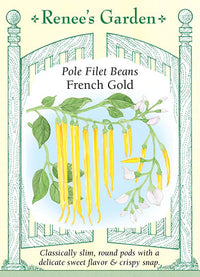 These hard-to-find, handsome yellow beans are true "haricot verts:" classically slim, round 7 to 9 inch pods with delicate, sweet flavor and a crispy snap that makes them especially choice eating. The heavy bearing, vigorous vines yield extra-fancy, juicy pods to enjoy in colorful summer meals over a long season of harvest. 60 days to harvest (approx. 60 seeds/pkt)