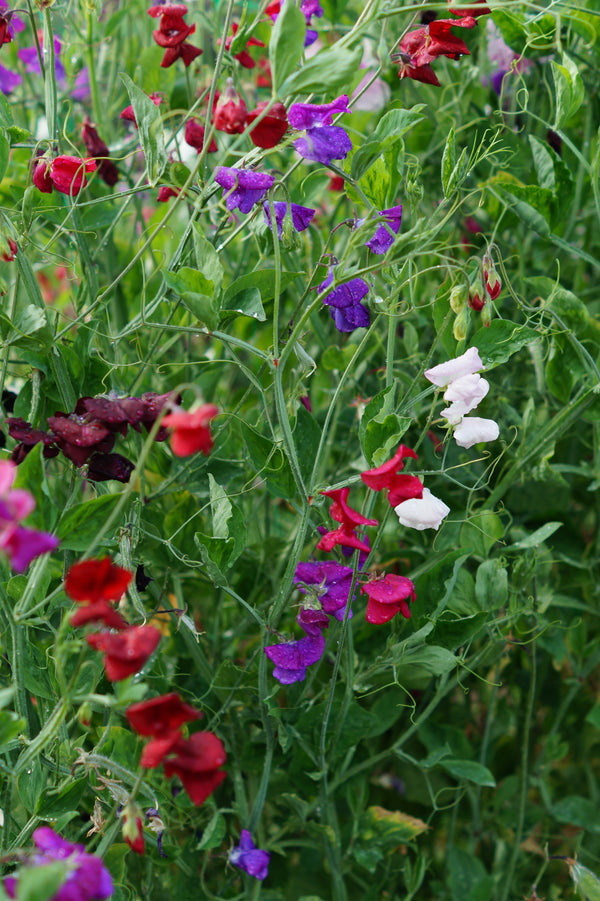 About- Long stems and brightly colored blooms make this sweet pea variety perfect as a cut flower. With shades of pink, crimson, lavender, and navy this mix makes a great addition to any garden.