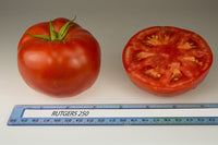 About- Introducing the Rutgers 250 Tomato - a perfect combination of tradition and modernity. This classic Jersey tomato is a true tribute to Rutgers University's 250th anniversary. Enjoy large, globe-shaped fruits that are slightly flattened and weigh up to 7.5 ounces. Rutgers 250 has a firmer skin, a better flavor, and a balanced acid and sugar content, making it an impressive version of the original Rutgers tomato.