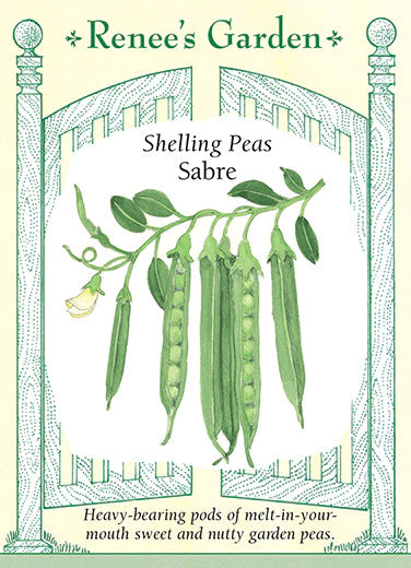 Sabre’s heavy-bearing vines that fill up early with scrumptious, sweet and nutty-tasting garden peas. Expect big yields from these easy-to-work, 2 1/2 to 3 foot tall vines that bear double sets of well-filled pods each with 10 to 12 tender peas that shell out easily. You’ll have a hard time getting these peas into the kitchen because they’re so good eaten fresh off the vine! Sabre is resistant to fusarium wilt, races 1 to 6, powdery mildew and root rot. (approx. 75-80 seeds/pkt)